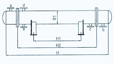 管口使用表: a.介质入口或出口;b.介质入口或出口;c.冷却水入口;d.冷却水出口;e.排净口